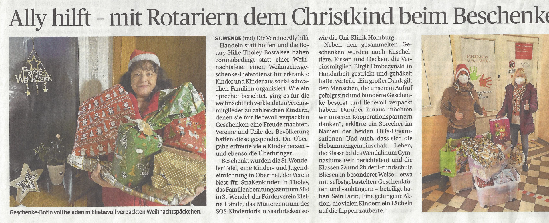 Artikel vom 24.November 2022, "Ally hilft sammelt Weihnachtsgeschenke", Saarbrücker Zeitung