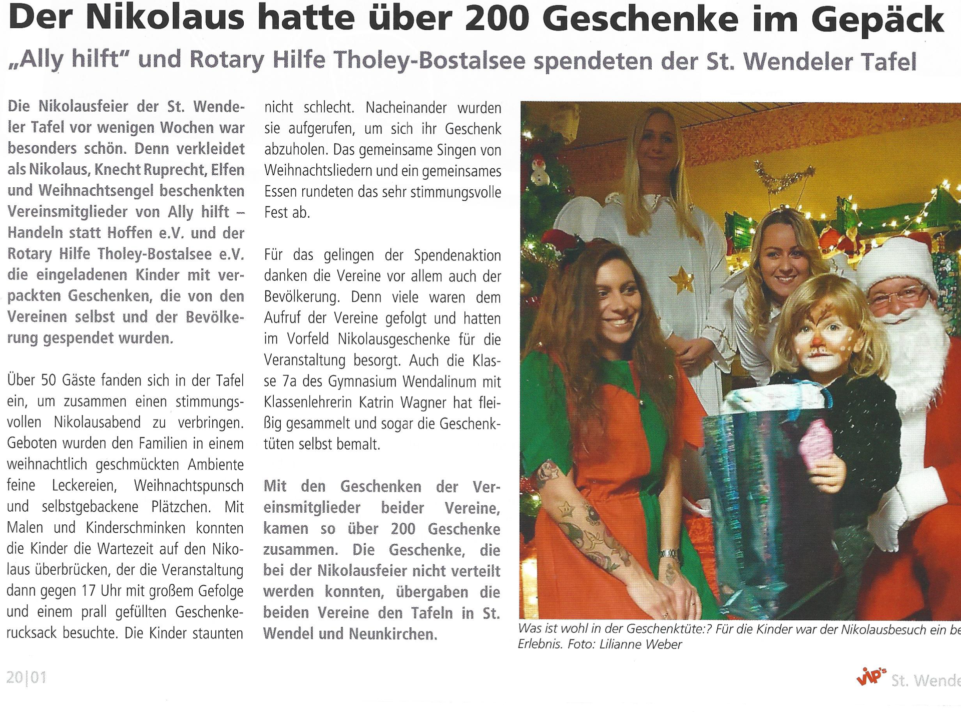 Artikel vom 09.12.2019, "Nikolausbesuch bei der St. Wendeler Tafel", wndn.de